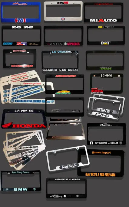 imprimimos portaplacas , de plástico metal.