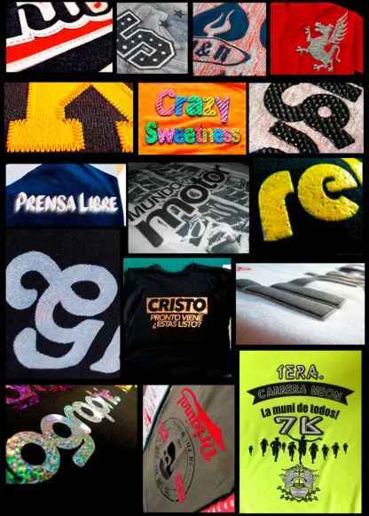 imprimimos tintas de efectos especialescomo highdensity , fosforescentes , puff reflectivas etc